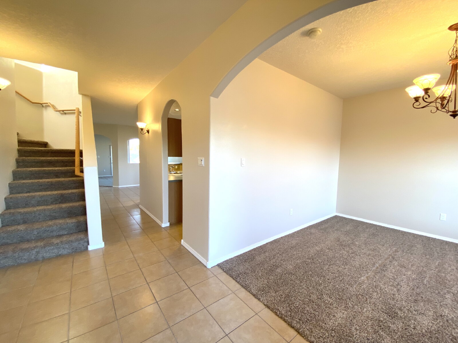Enchanted Hills, corner lot, landscaped frontyard. 2 Story home, all bedrooms down stairs with mountain views from the loft upstairs. FRESH PAINT and NEW CARPET THROUGHOUT. Living room has a gas log fireplace and access to back yard. Formal dining room at the front of the house. Kitchen w/large eat in area, breakfast bar, great counter/cabinet space and large walk in pantry. Appliances include side-by-side refrigerator w/water and ice, double oven, electric cooktop stove, microwave, dishwasher, disposal. Master suite include large walk-in closet, double vanity, garden tub, separate walk-in shower. Full hall bathroom w/single vanity, shower/tub combo. Carpet/tile flooring, window blinds, ceiling fans, laundry room w/washer and dryer. Backyard fully fenced with covered patio. Refrigerated A/C, 3 Car garage w/remotes, easy access to Hwy 550 for commute to Santa Fe or into Albuquerque.